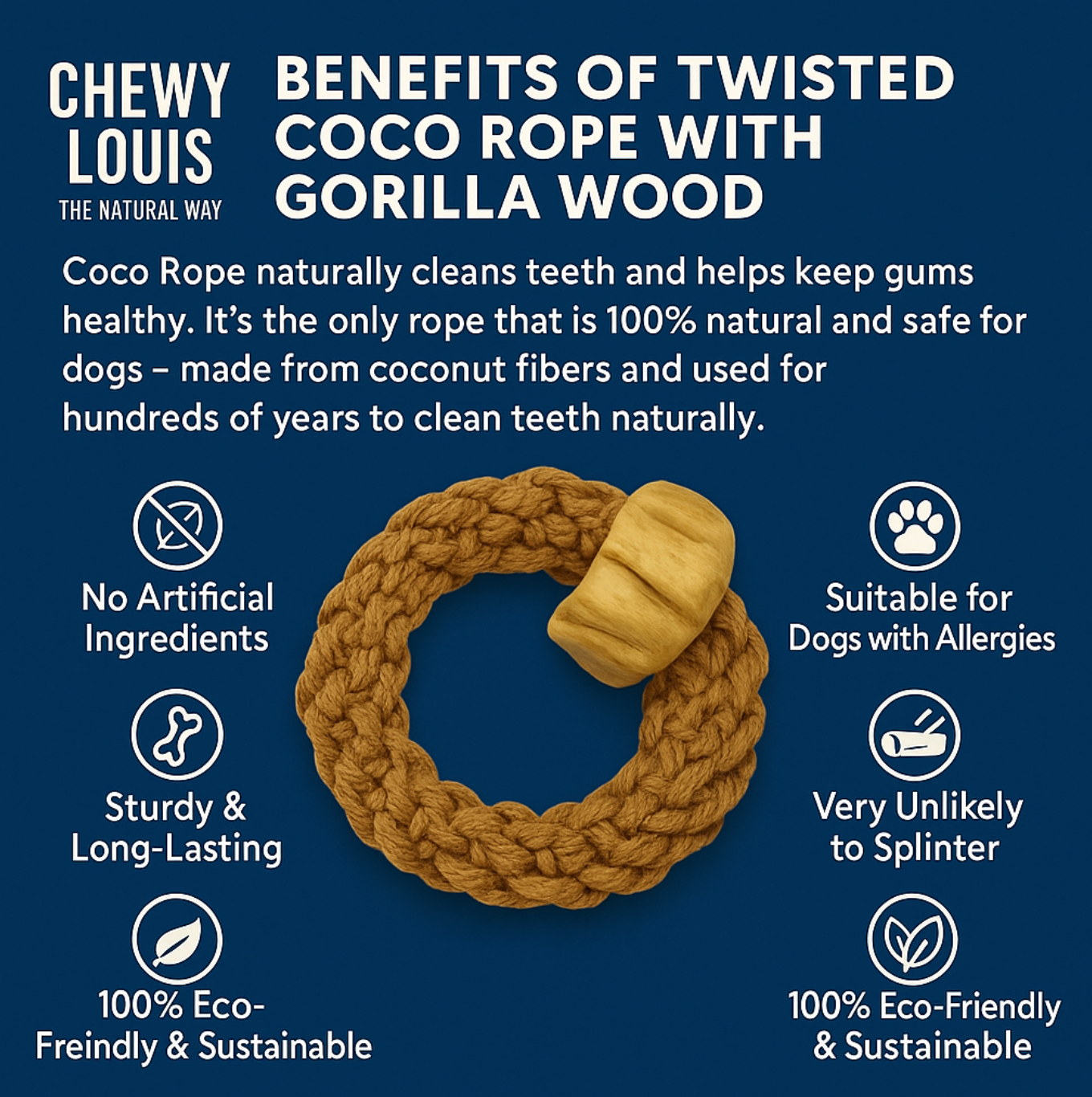 ๐งต Durable Construction: Thick twisted rope with rugged wooden elements built to withstand vigorous chewing and tugging